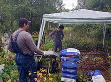 Первым делом мы принялись за уборку: убрали с территории места захоронения абсолютно всё, включая выложенную заказчиком плитку, памятники, а также сорную траву.